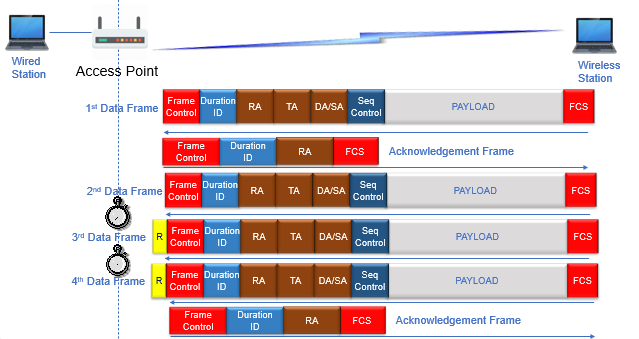 In the illustration, we see this actually takes multiple attempts, and it isn’t until the 4th frame that we then see an acknowledgement.