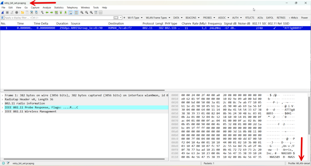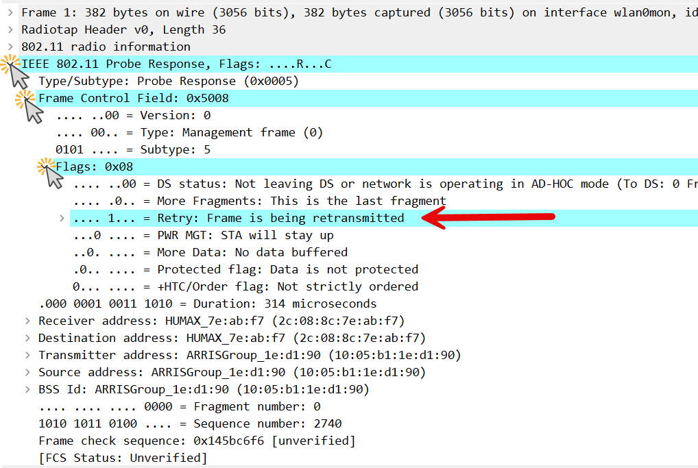 Some of you will note this is a Probe Frame. Probes can often get this issue because you aren’t actually on the WLAN yet, so you are just walking into the party asking for networks you know without taking your turn!!