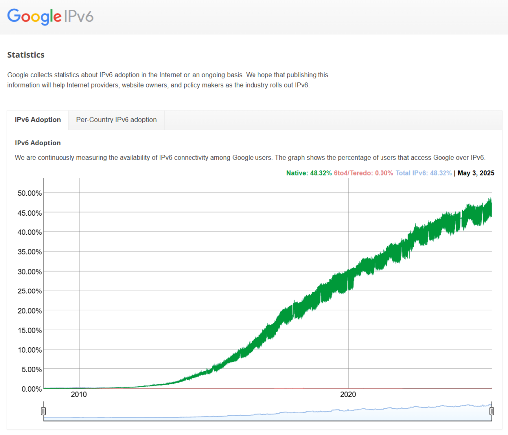- 2023 – IPv6 adoption exceeds 50% of global Internet traffic (according to Google stats).