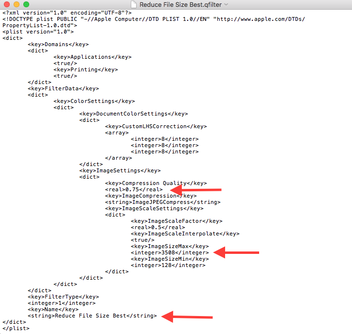 Well, there is a great way to give yourself more choices. The Quartz filters are located in the folder /System/Library/Filters. These are XML files that are easily edited with TextEdit or any other text editor. If you look at the file for the Reduce File Size filter, you will see two of the parameters: