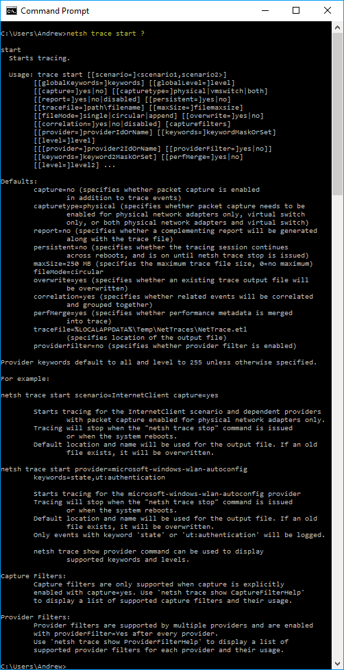 netsh trace start capture=yes traceFile="c:\netsh_trace.cap"