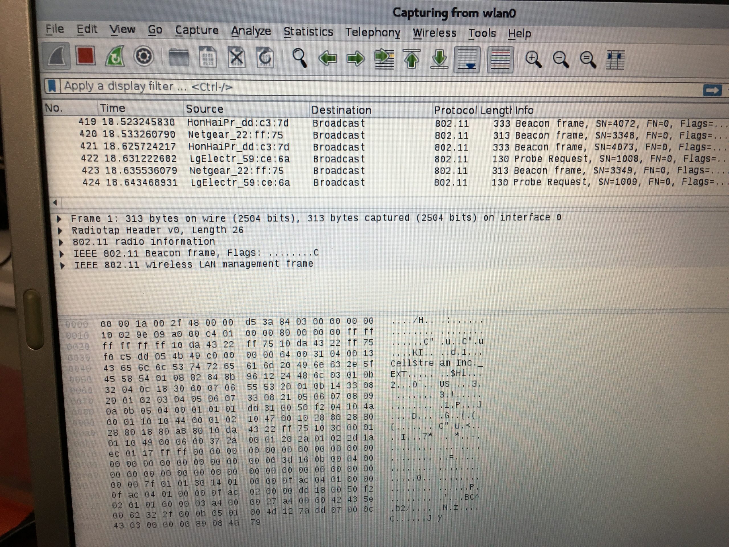 Now we can start capturing on Wireshark using the wlan0 interface. If you previously had Wireshark open, close it and re-open it.