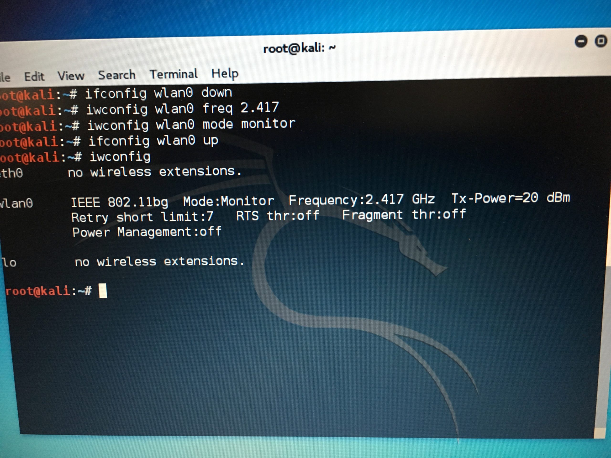 - Put the wlan0 interface into monitor mode: ‘iwconfig wlan0 mode monitor’
