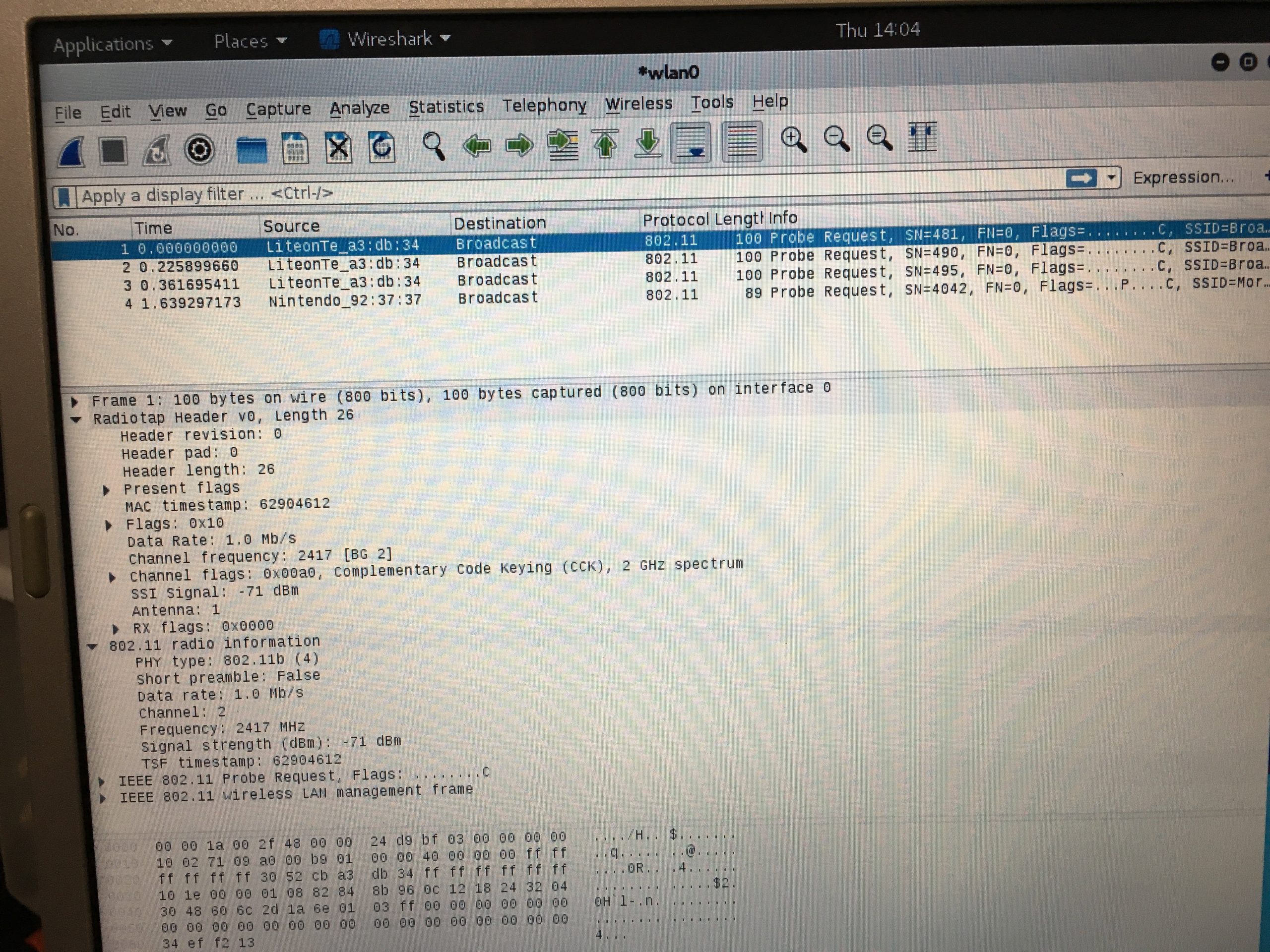 I expanded the Radiotap header and you can see that we are capturing on channel 2! Only probe requests as no one is on that channel (thank goodness!).
