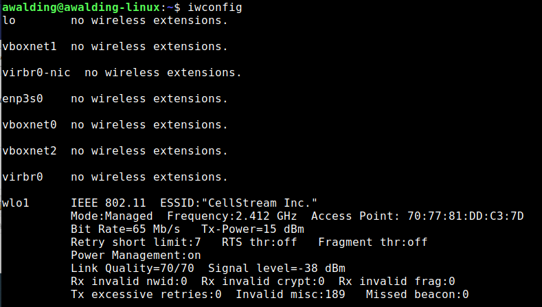You should see an output that displays your system network interfaces that support wireless extensions: