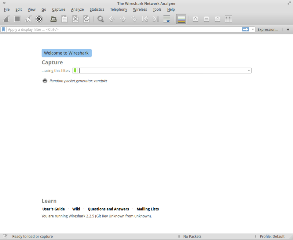 Now just run Wireshark by typing Wireshark in the terminal window or executing it from the applications list.