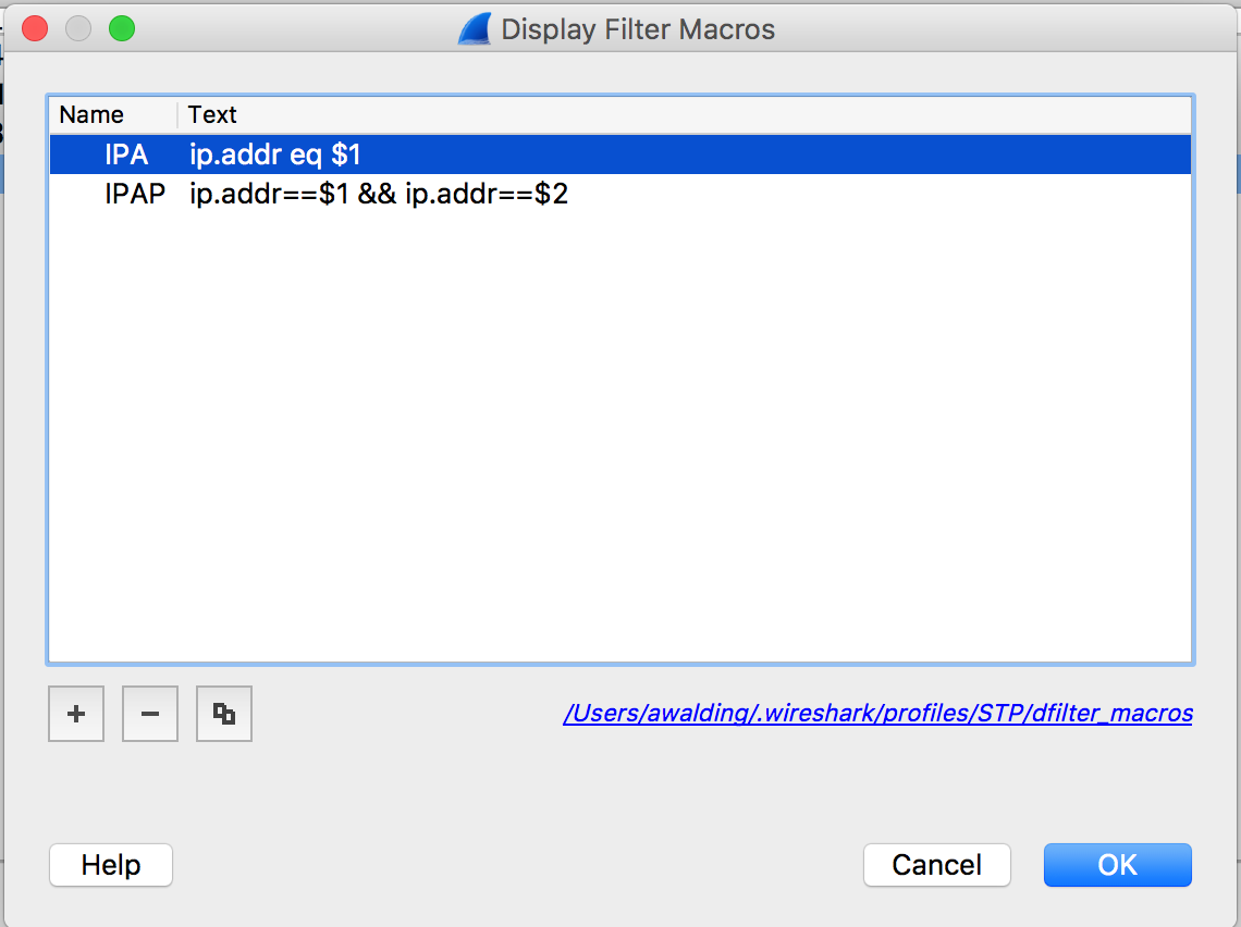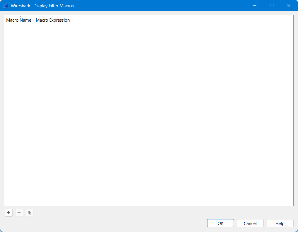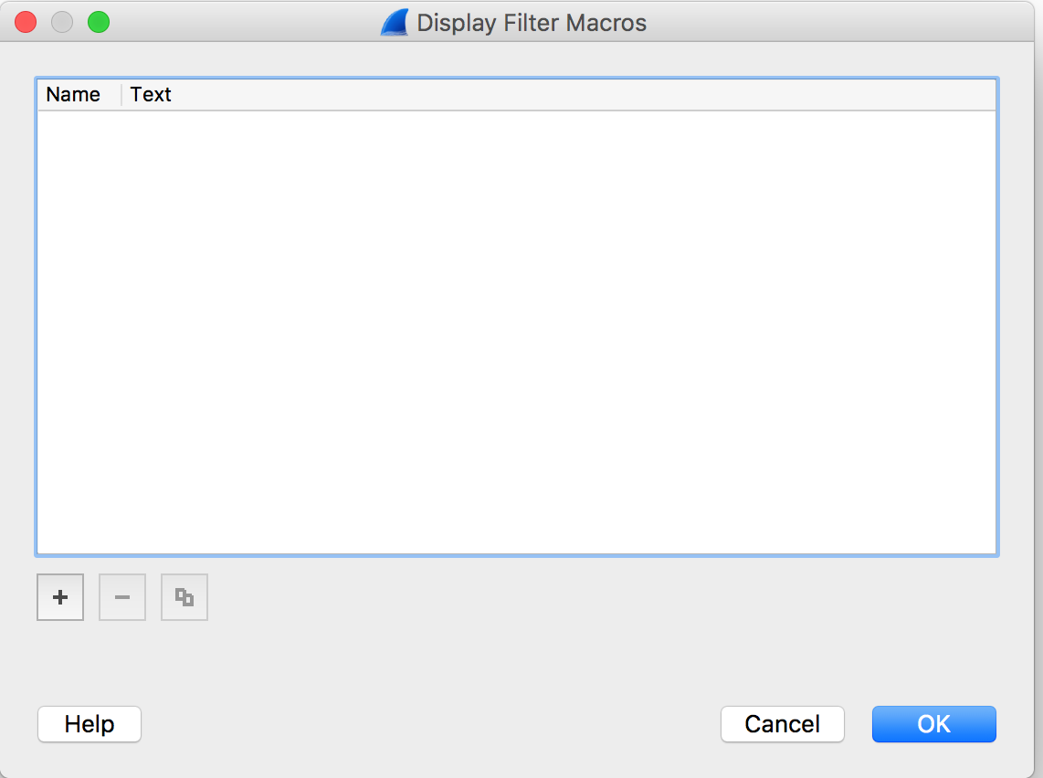 As with any of the Wireshark lists, click the “+” sign to add a macro.