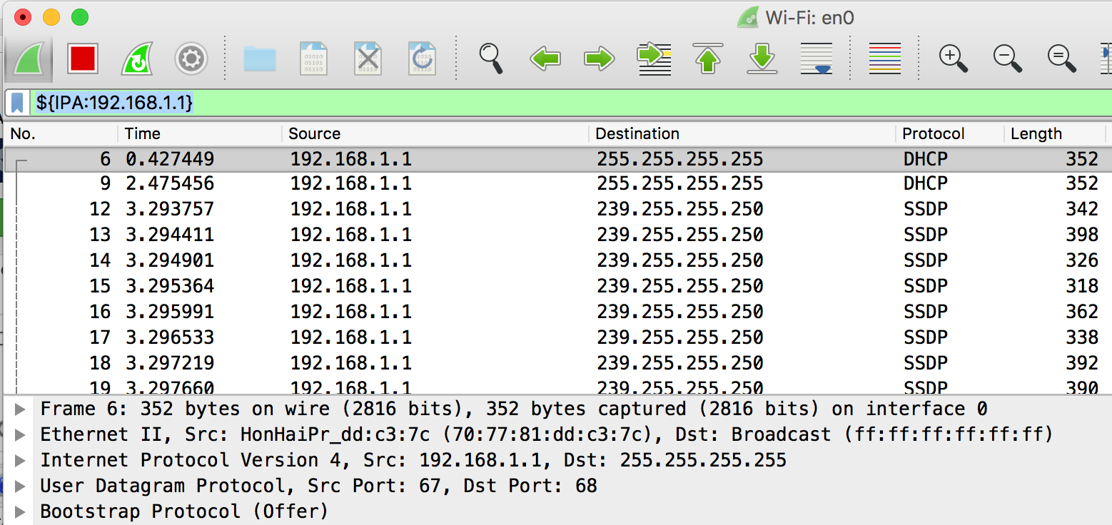 | plcm | IP Telephony – find PLCM for a particular MAC 12-34-56 | eth.addr == 00-04-f2-$1 || bootp.hw.mac_addr == 00-04-f2-$1 | ${plcm:12-34-56} |