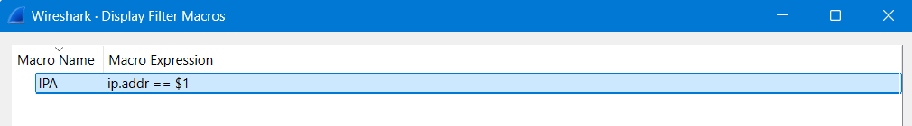 Luckily Wireshark has a very little known capability called display filter macros. In the entire Wireshark web site, there may be 10 total sentences dedicated to the capability. Ok it might be 12 sentences.