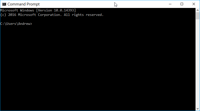 You should get a choice for the command prompt – select it. Once open it will look something like this: