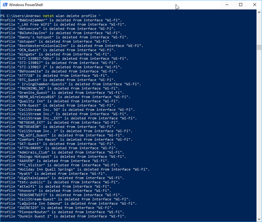 netsh wlan delete profile *