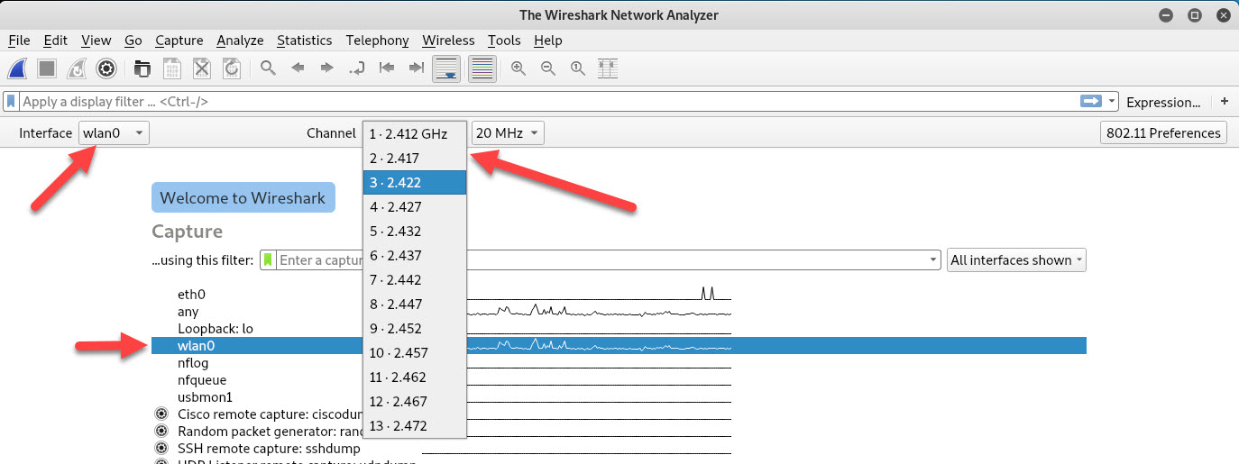 Great! Now we can put the adapter into Monitor mode. There are multiple ways to do this (you can see our article on the choices here), but we are going to do this as follows (refer to the screen shot below):