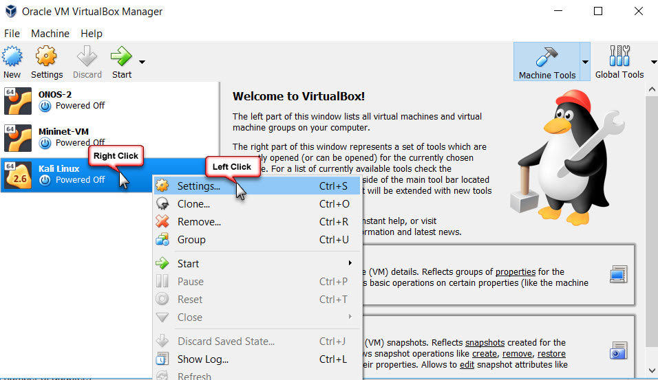 Second you need a VM set up – in my case I have Kali Linux set up in Virtual Box. All free.