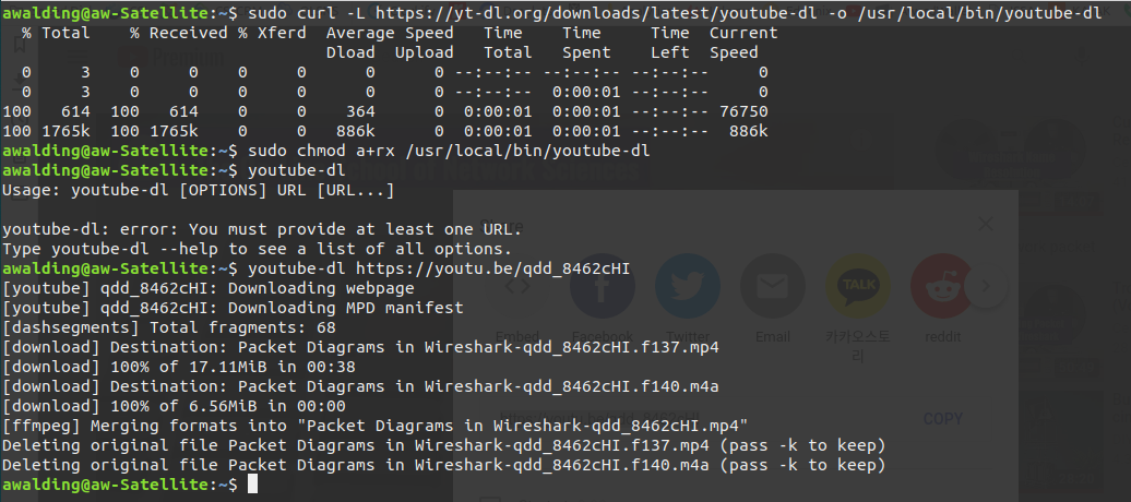 sudo curl -L https://yt-dl.org/downloads/latest/youtube-dl -o /usr/local/bin/youtube-dl