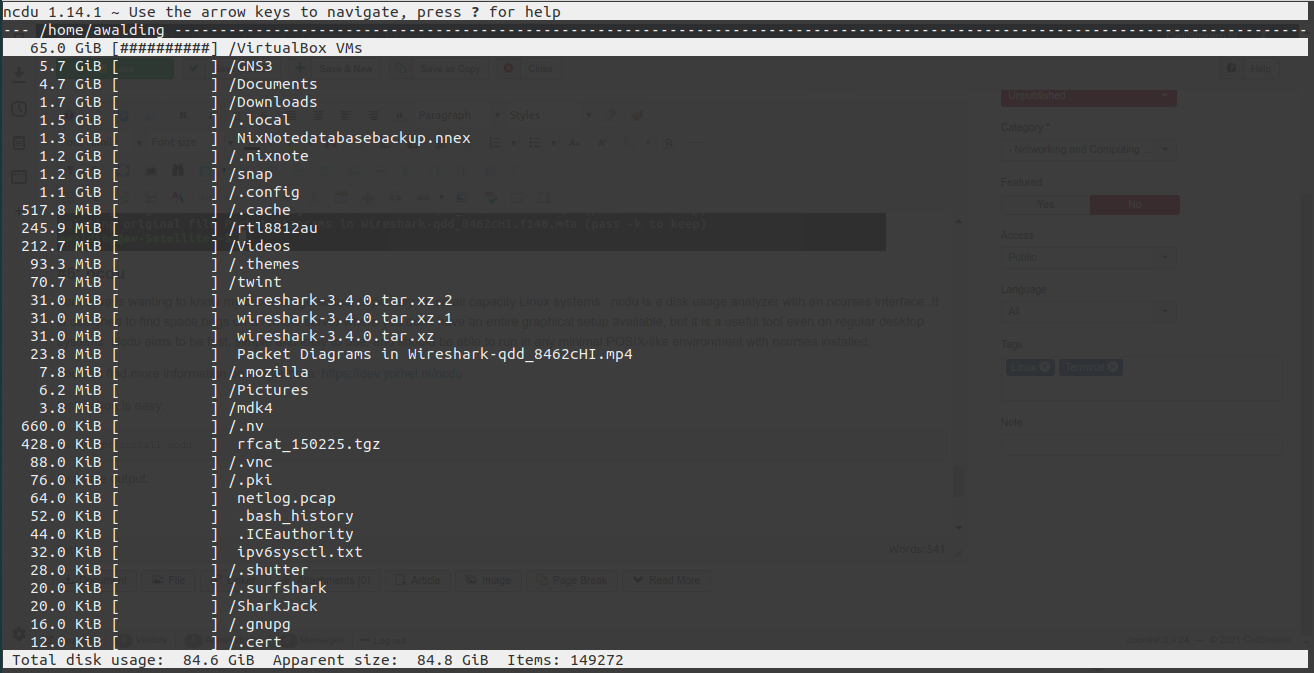 You can find more information on ncdu here: https://dev.yorhel.nl/ncdu