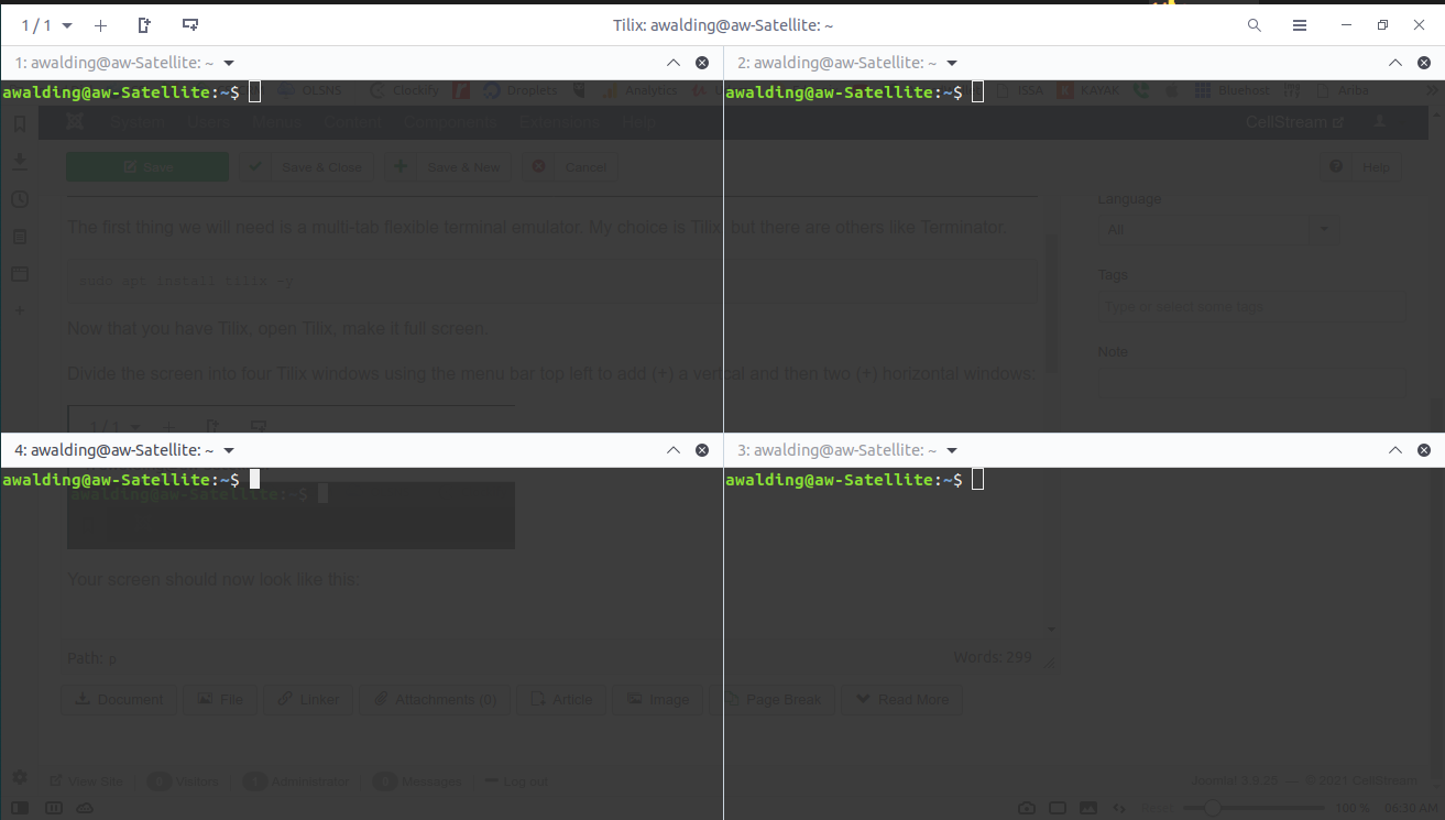 The first thing we will need is a multi-tab flexible terminal emulator. My choice is Tilix, but there are others like Terminator.