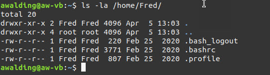 ls -la /home/Fred/