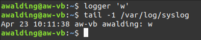 awalding@aw-vb:~$ logger This is my first comment to add to the log!