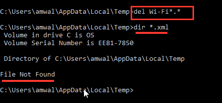 C:\Users\amwal>cd %temp% C:\Users\amwal\AppData\Local\Temp>