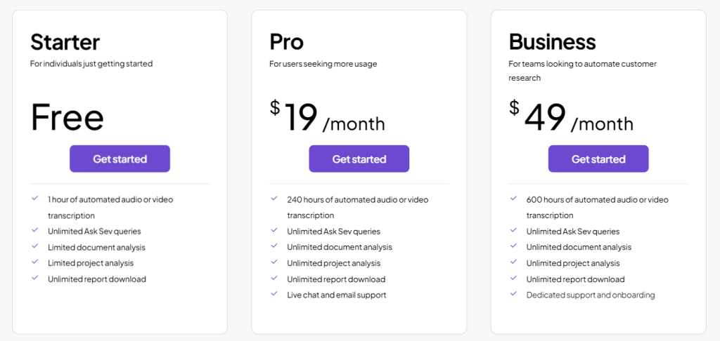 What about customer insights you might ask? An AI tool created by Insight7 called “Ask SEV” may be what you need to integrate into your business to generate these customer insights. You can learn more and explore here: https://insight7.io/ Pricing for Ask Sev is as follows: