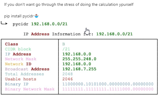 So what is the issue? Someone posted that this tool called “pycidr” was great: