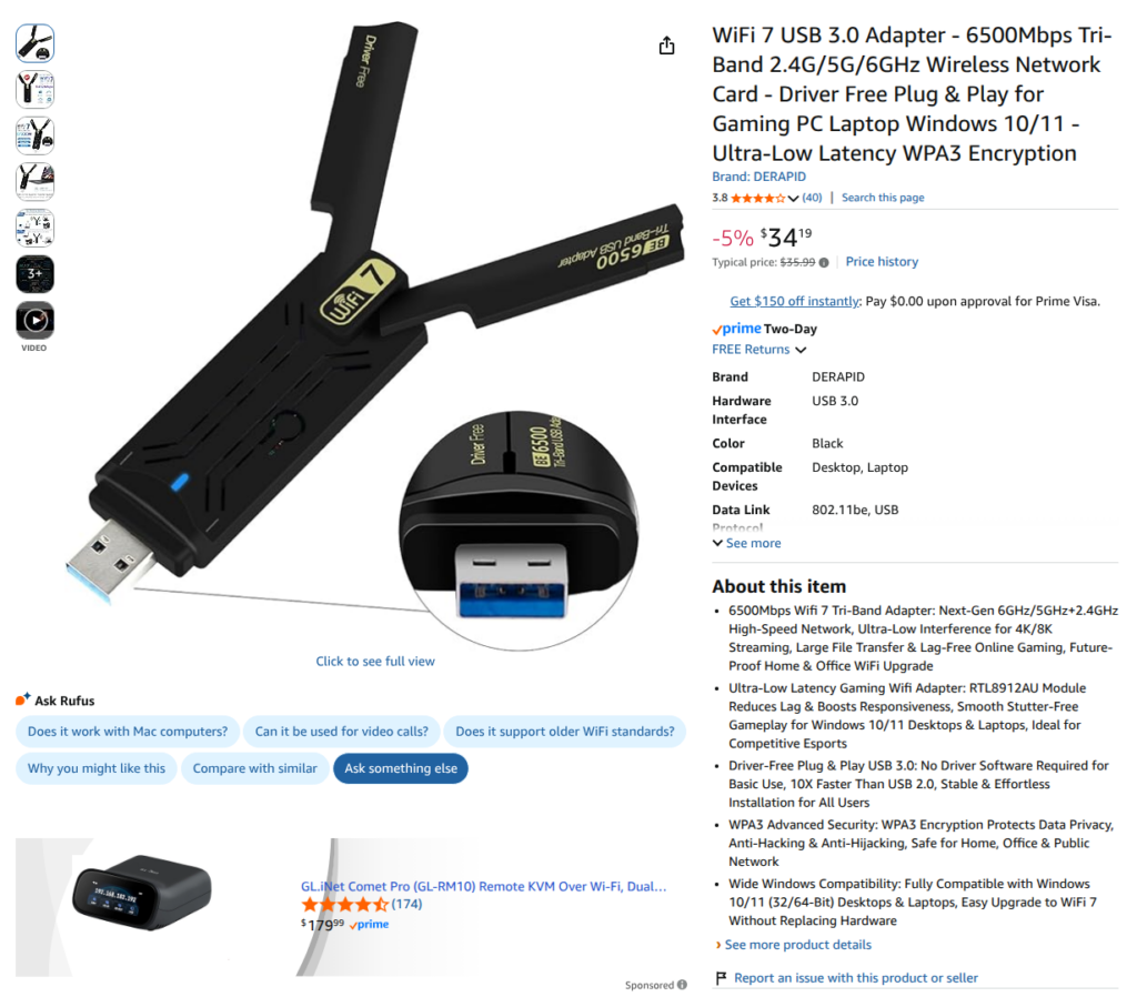 A Wi-Fi 7 Tri-Band USB Adapter now available on Amazon
