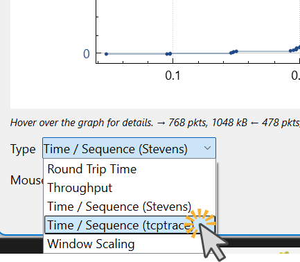 Below this is a Type field, that allows you to switch the different types of TCP graphs supported in Wireshark. We will stay with Stevens for now.