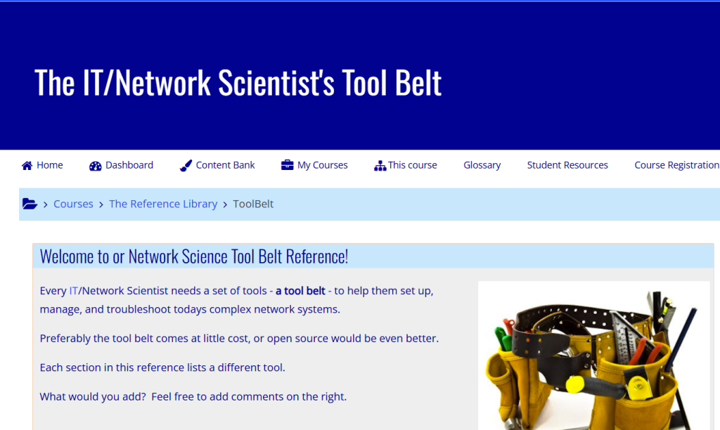 At our Online School of Network Science, we have created a Network Scientist Tool Belt. This completely free resource is available for you to access, learn and add software and hardware tools to troubleshoot todays networks.