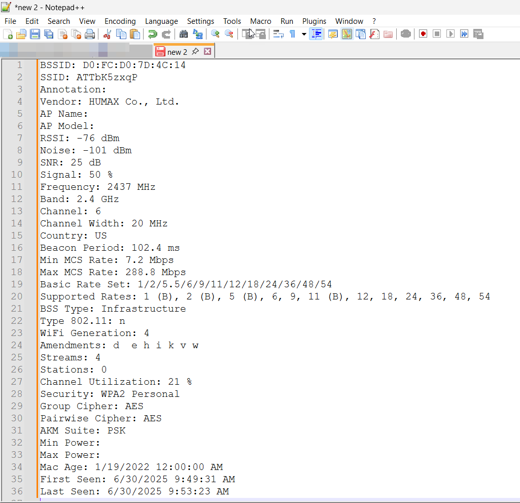 Done! All the critical information from that Beacon Frame can be seen, pasted into a trouble ticket, whatever.