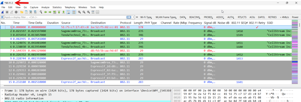 Now if we were to open Wireshark and capture packets on the Wi-Fi 2 interface we would see it is listening: