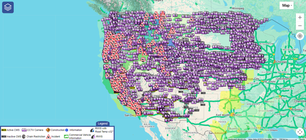 Since 2023, we have shared information that helps folks that travel the western US. We learned about this site that has live cameras and warnings of road conditions, travel information, traffic cams, weather warnings, incidents, and much more from a colleague (thank you Doug Galarus!), and have used it on our many road trips to and around the west coast. Well, they just updated the map to include more central northern content covering almost to Kansas City and Chicago!