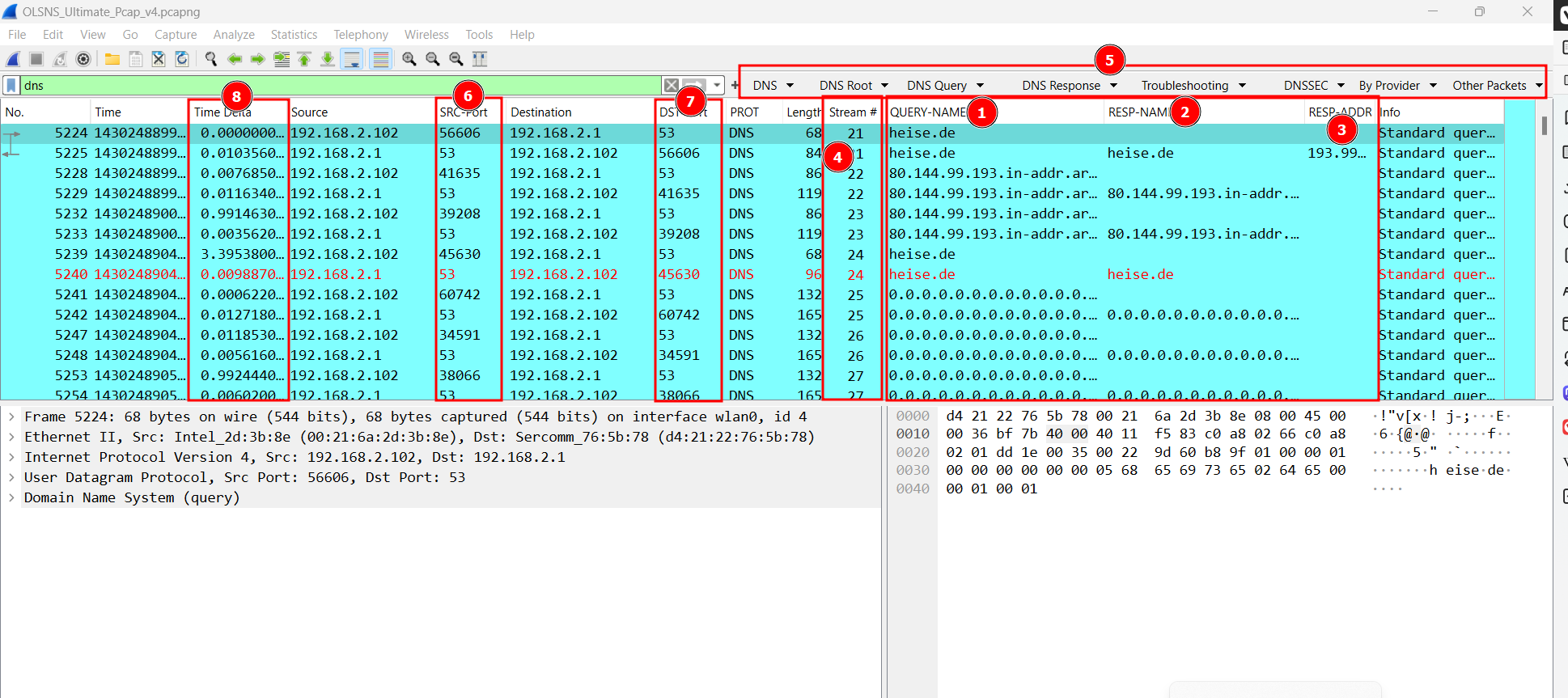 1, 2 & 3. We added both Query and Response information as columns - a must for any DNS profile you might make.