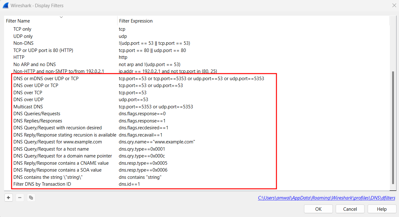 This is a great profile for DNS learning, troubleshooting, and analysis.  See the contents below: