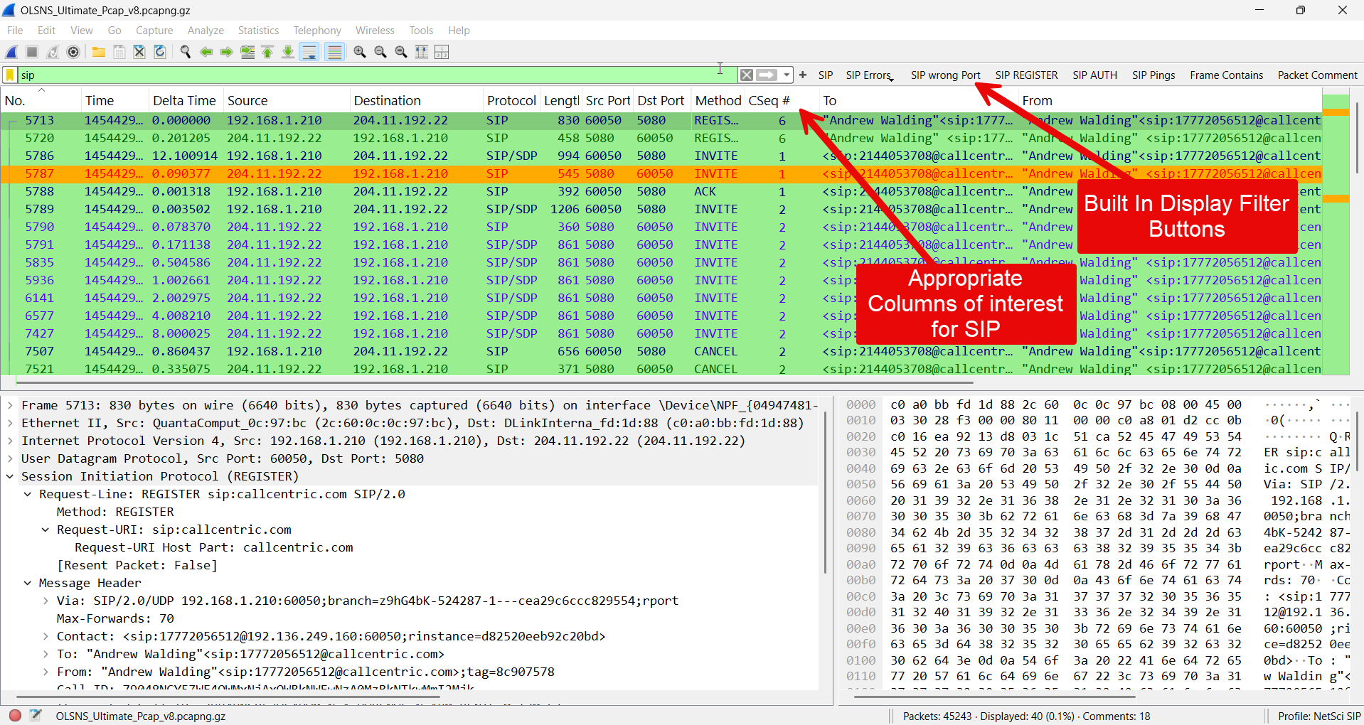This profile is for VoIP SIP protocol analysis in Wireshark. You need a number of profiles to be successful with complete VoIP packet analysis. Since SIP is the control plane of VoIP, this is a big one!!
