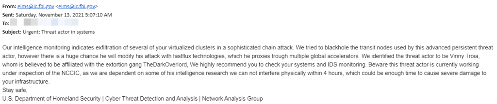 From a news channel this evening: “The FBI and CISA are aware of the incident this morning involving fake emails from an @ic.fbi.gov email account,” the FBI said in a statement. “This is an ongoing situation and we are not able to provide any additional information at this time. The impacted hardware was taken offline […]